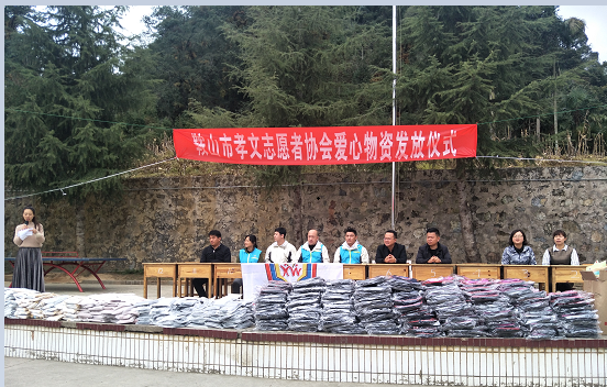 活动中,团县委书记对孝文志愿者协会的爱心人士远道而来给小朋友们发放爱心新年物资表示感谢;他希望,同学们在温暖爱心的关怀下,常怀感人之心,倍加珍惜来之不易的学习机会,勤奋刻苦学习,以后做一个对祖国、社会、家庭有用的人。随后,孝文志愿者协会副会长谢身凯代表爱心人士发言,他表示,很高兴能参与到这样的爱心捐助活动中,让广大的学子能够温暖过冬、快乐过年,把困难化为成才之志,把感激之情化为发奋之源,以积极向上的心态面对一切。和平镇党委副书记堵志华发言,他说,这样的爱心活动让学生感受到了来自党和政府、来自社会的关心和爱护,勉励同学们在今后的学习生活阳光向上,努力学习。五年级学生代表林梅代表全体受助学生发言,对孝文志愿者协会、团县委及社会各界爱心人士表达了感谢,并表示在今后的学习生活中会更加勤奋努力学习,克服一切困难,常怀感恩之心。之后,参加活动的领导及爱心人士将一份份崭新的冲锋衣、秋衣裤、帽子围巾、书包、文具爱心礼物发到同学们手中,收到爱心礼物小朋友们洋溢着幸福的笑脸。最后,孝文志愿者协会的爱心人士在团委工作人员及老师的带领下,对5个相对贫困的学生家庭进行了走访,爱心人士表示回去之后会整合资源,发挥力量,对这5名贫困学生进行长期资助。